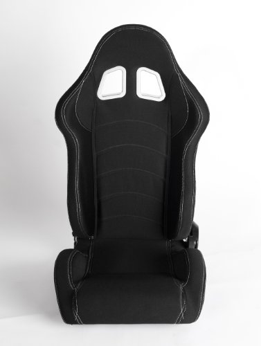 Cipher Auto Black Cloth w/ White Outer Stitching Universal Racing Seats (Two Seats) CPA1016 Reviews